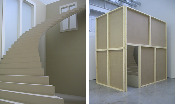 Meeting Félicité, 1999, h 4 m, w 2.44 m, d 3.92 m. Plywood, MDF-board, glass. UKS gallery, Oslo, 2004