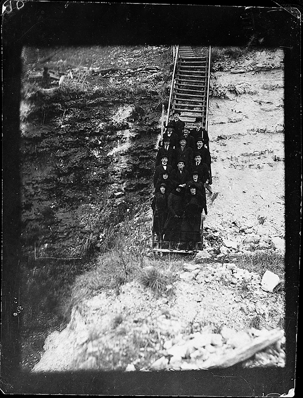 A group of people dressed for picnic find themselves in a harsh environment seemingly clinging to each other.