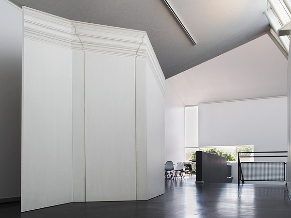 The architecturally painted screen becomes a theatrical prop that can be seen from several perspectives, but always remains the illusion of an illusion. It might be compared with the backdrops in photographers´ studios in the nineteenth century, or with the folding screens which conceales scenes of dressing and undressing.
